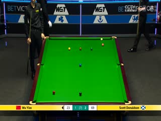 斯诺克威尔士公开赛64进32 吴宜泽4-3斯科特·唐纳森 20250211